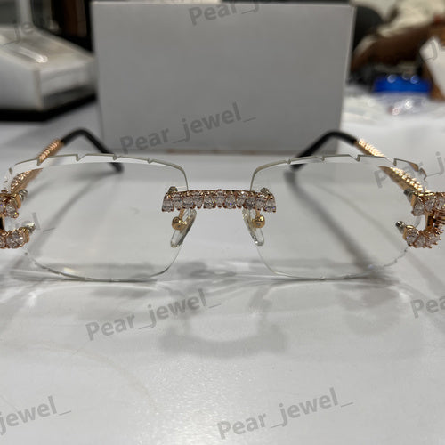 Iced Out VVS Moissanite Diamond Glasses Unisex Wear Rimless Sunglasses