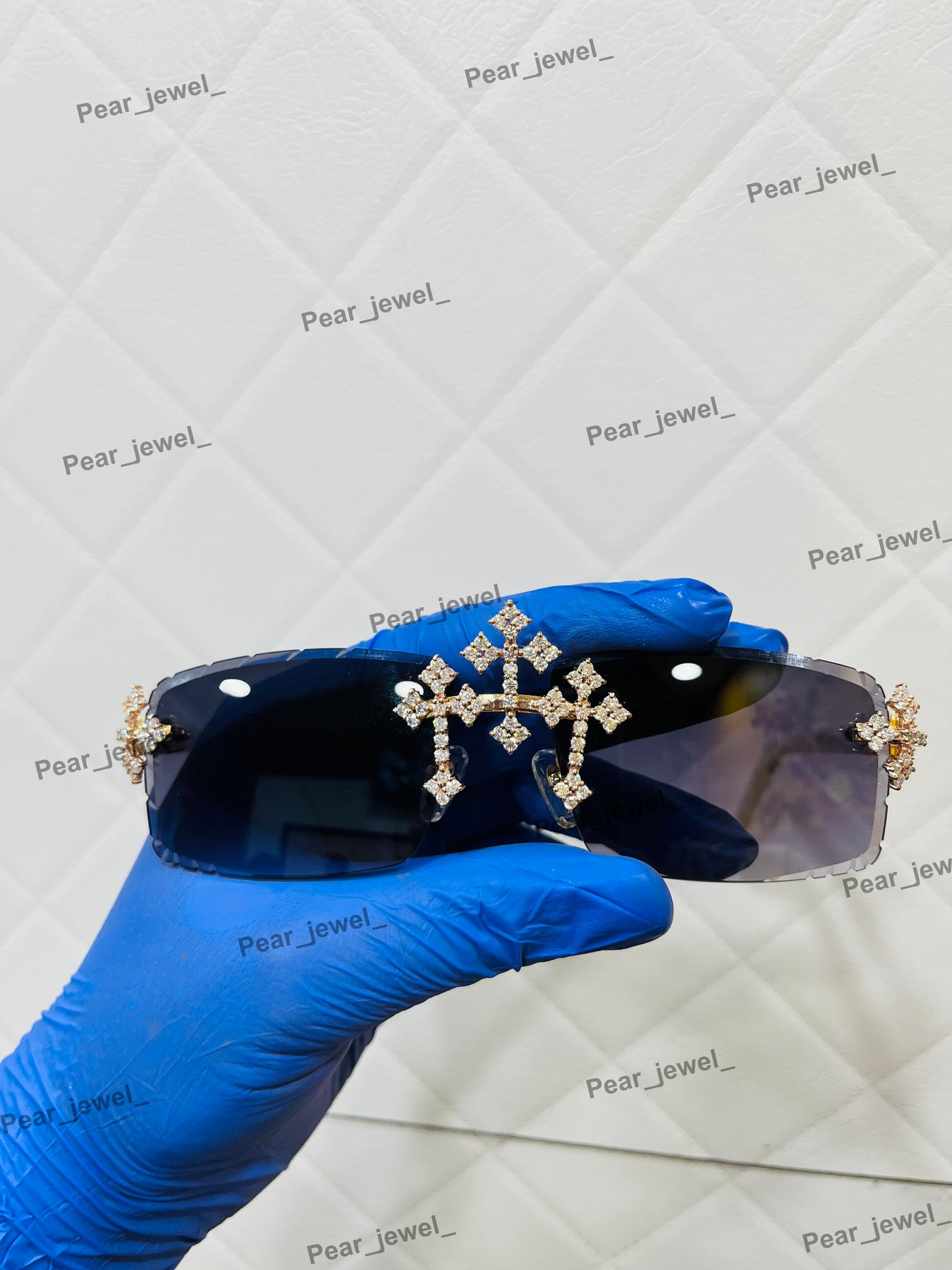 Silver Iced Out Cross Sunglasses VVS Moissanite Diamond Desginer Glasses