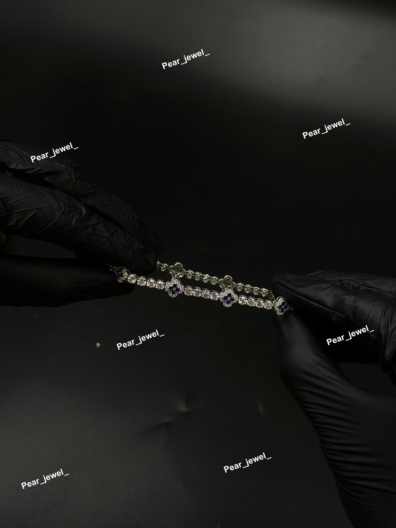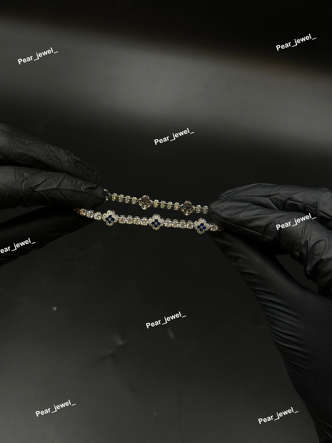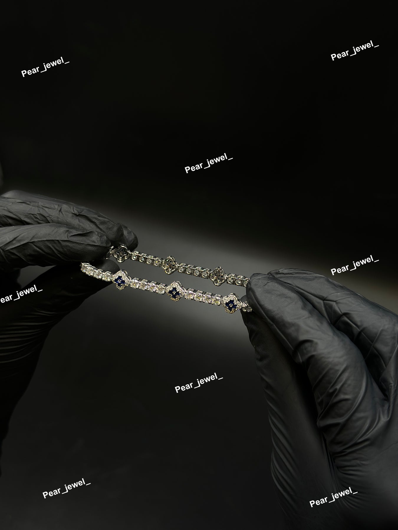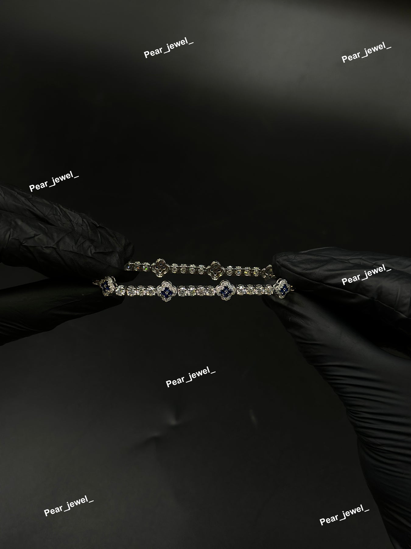 Dark Blue Accent Iced Out Clover Tennis Bracelet VVS Moissanite Dimaond Silver Shine