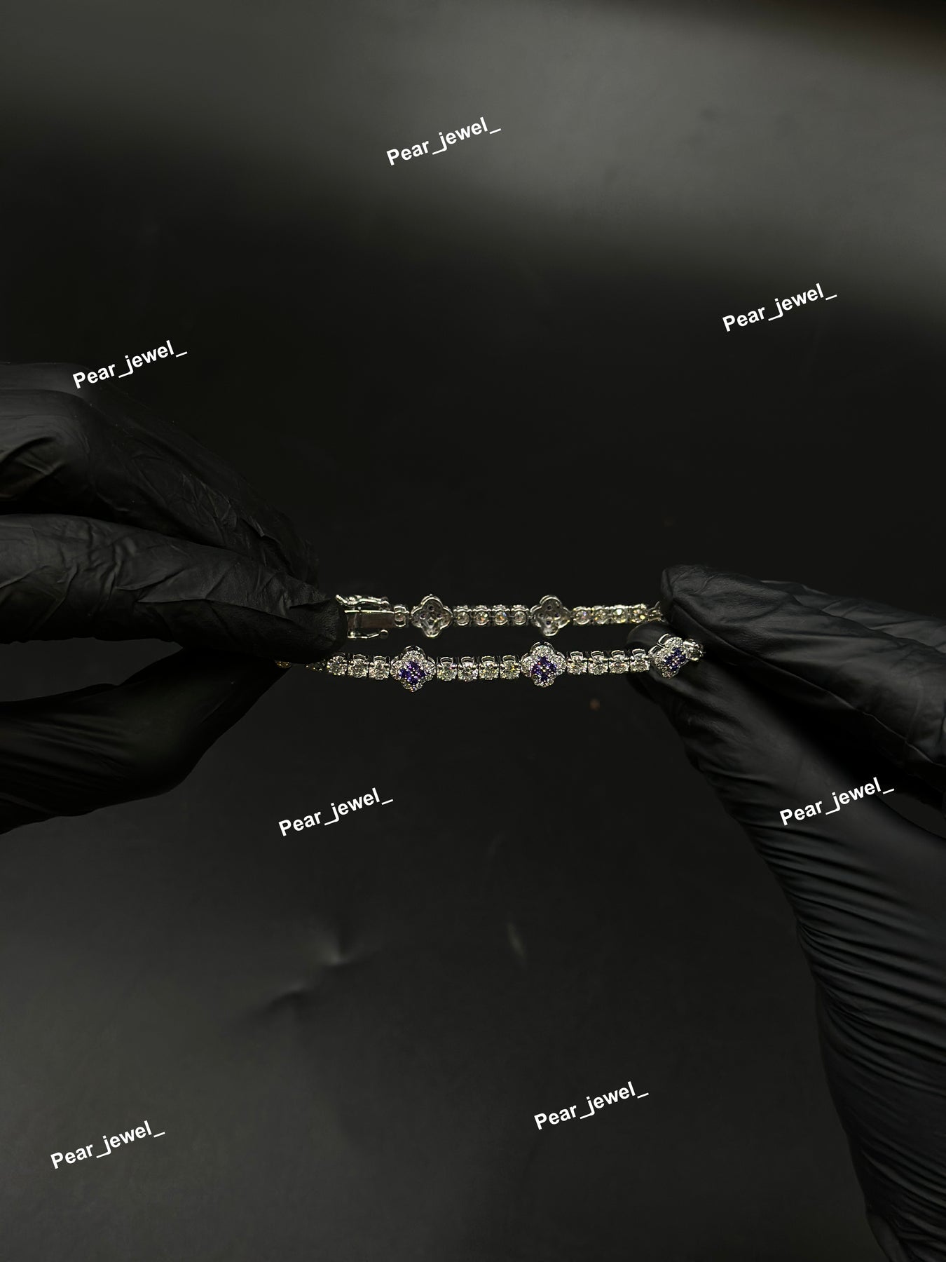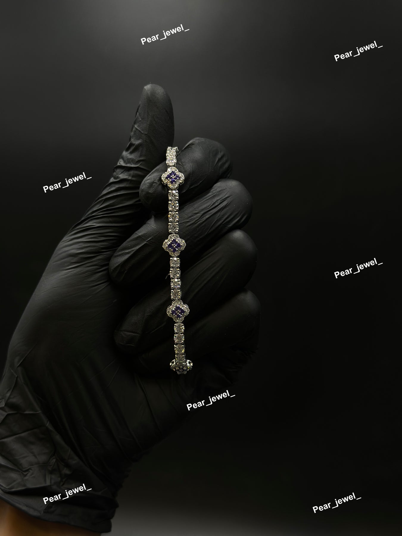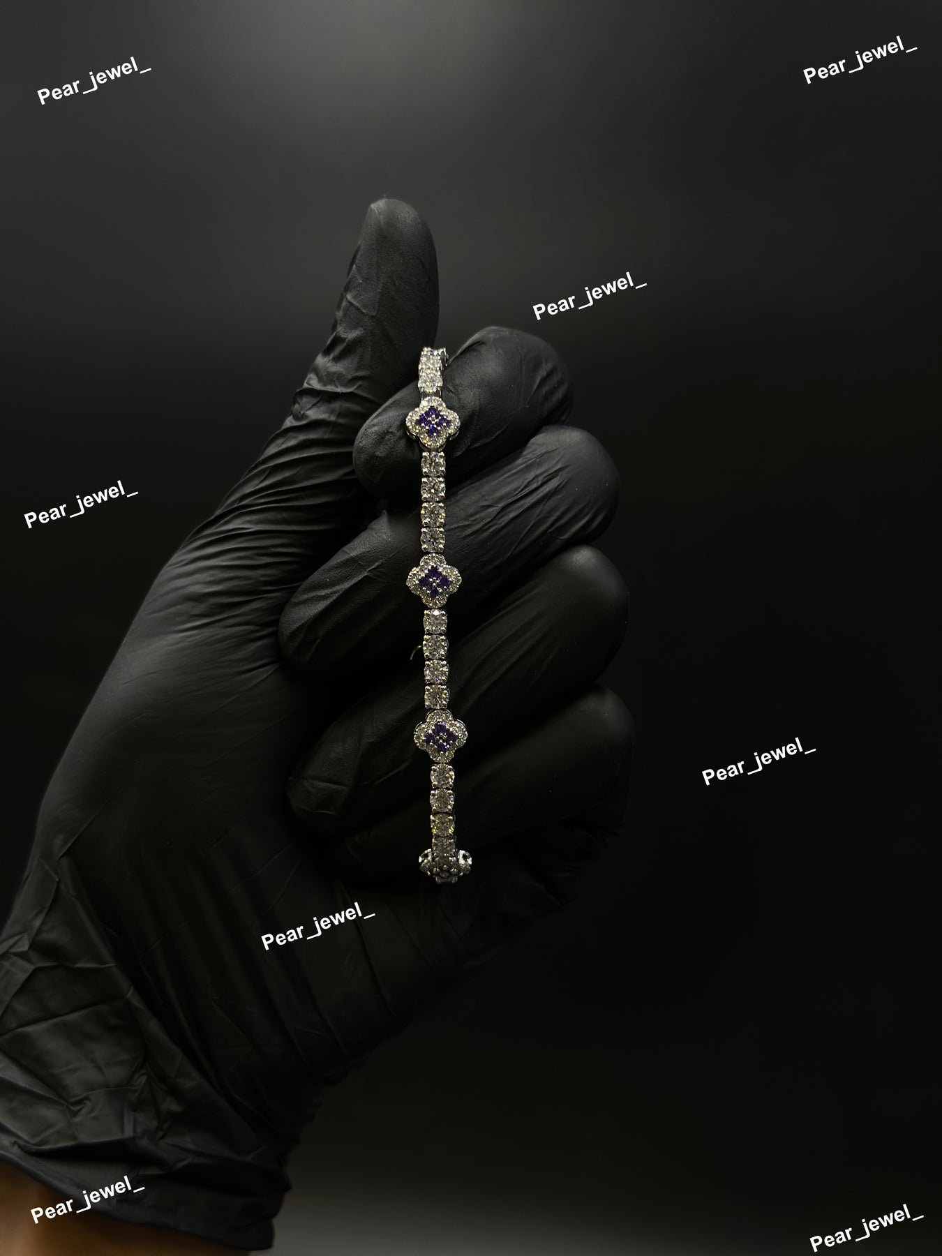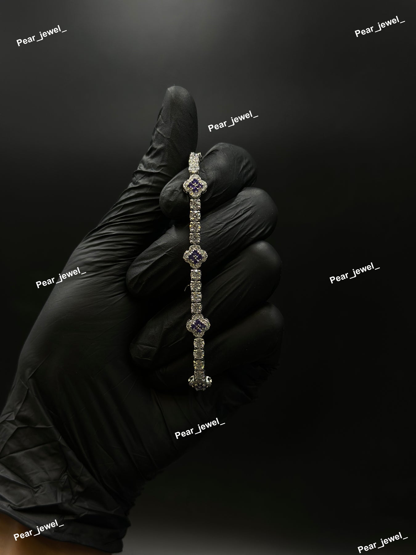 Purple Accent Iced Out Tennis Clover Bracelet VVS Moissanite Dimaond Look Silver Shine