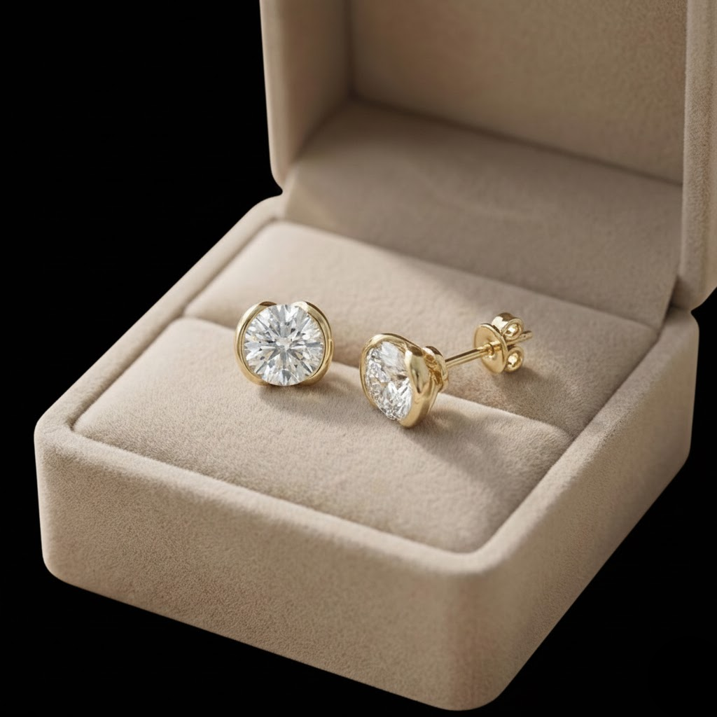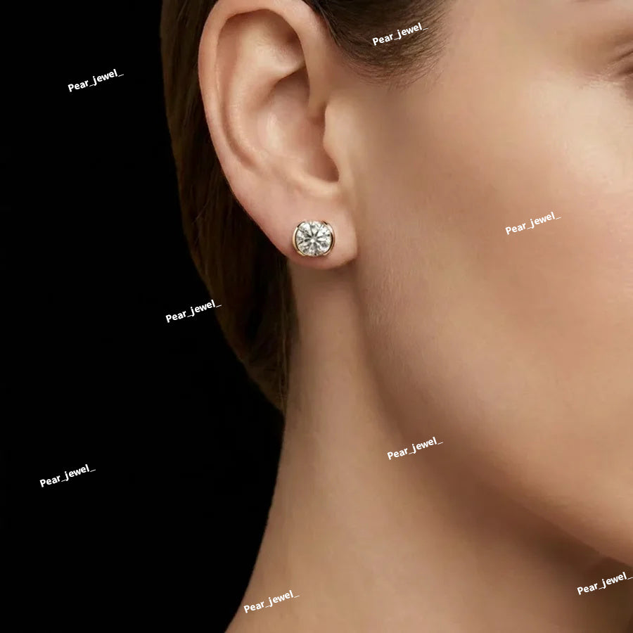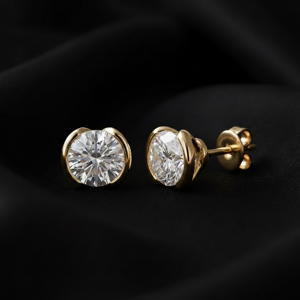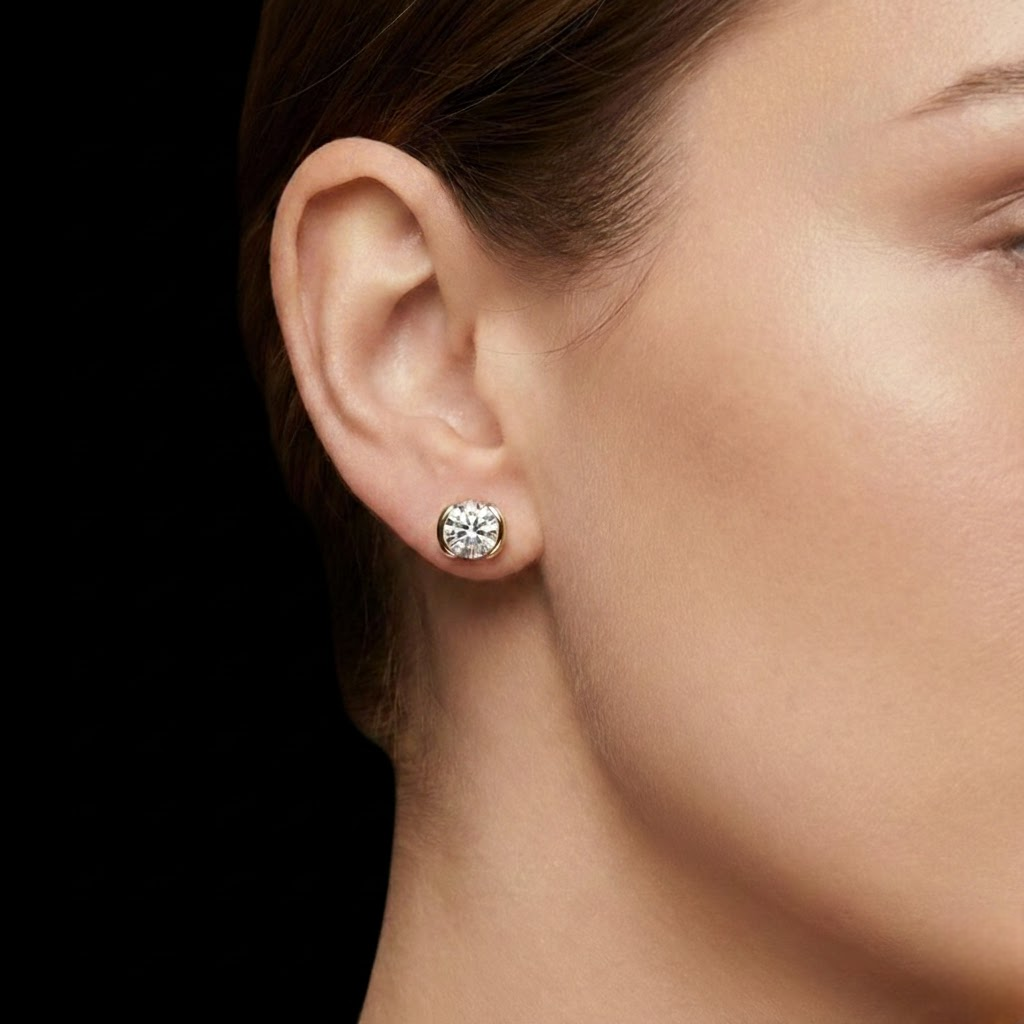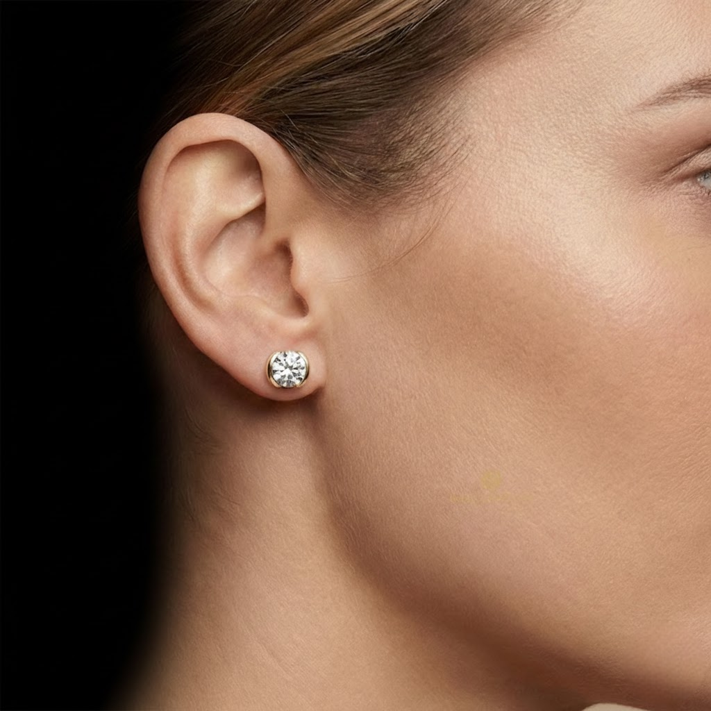 Round Cut Solitaire Stud Earrings Gold Tone Diamond Look Classsic Shine