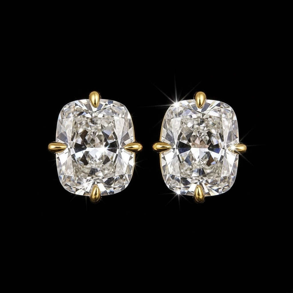 Cushion Cut Moissanite Diamond Stud 925 Silver Classic Luxury Jewelry