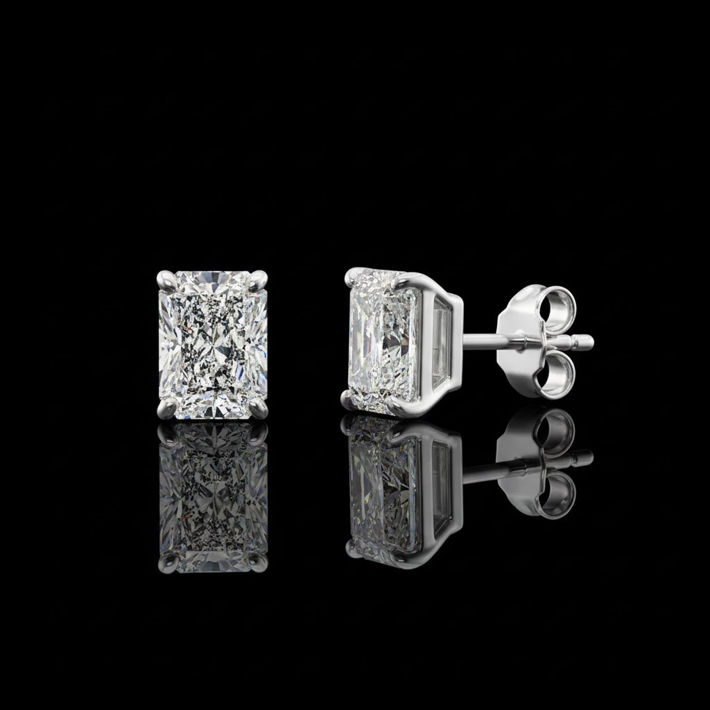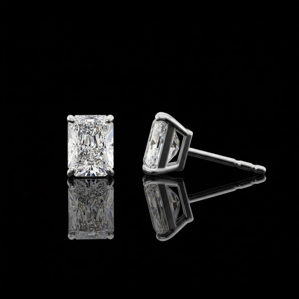 Radiant Cut Moissanite Stud Earring in 925 Silver Classic