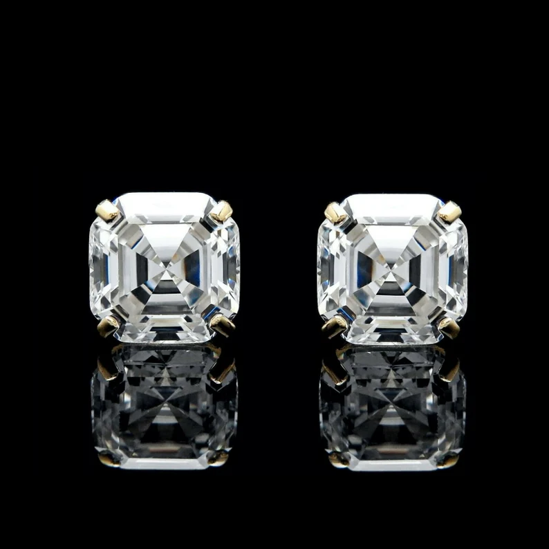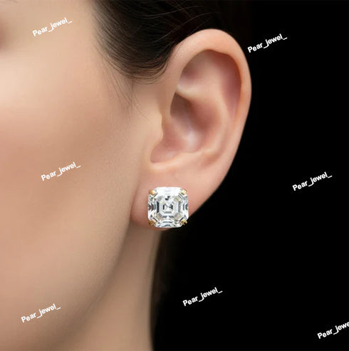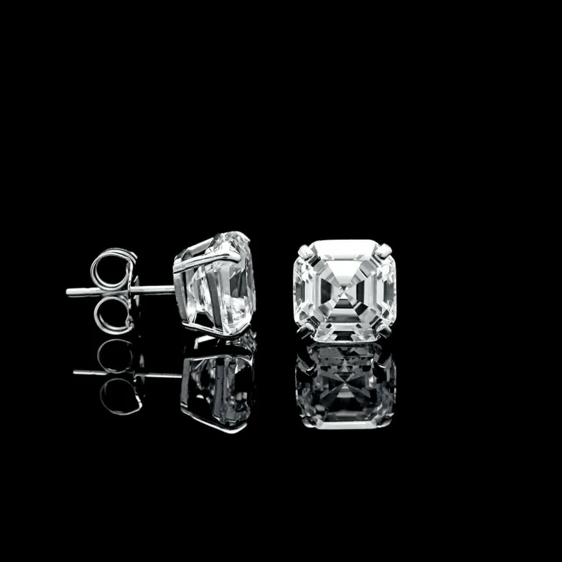 Asscher Cut Solitaire Stud Earrings Iced Out Shine