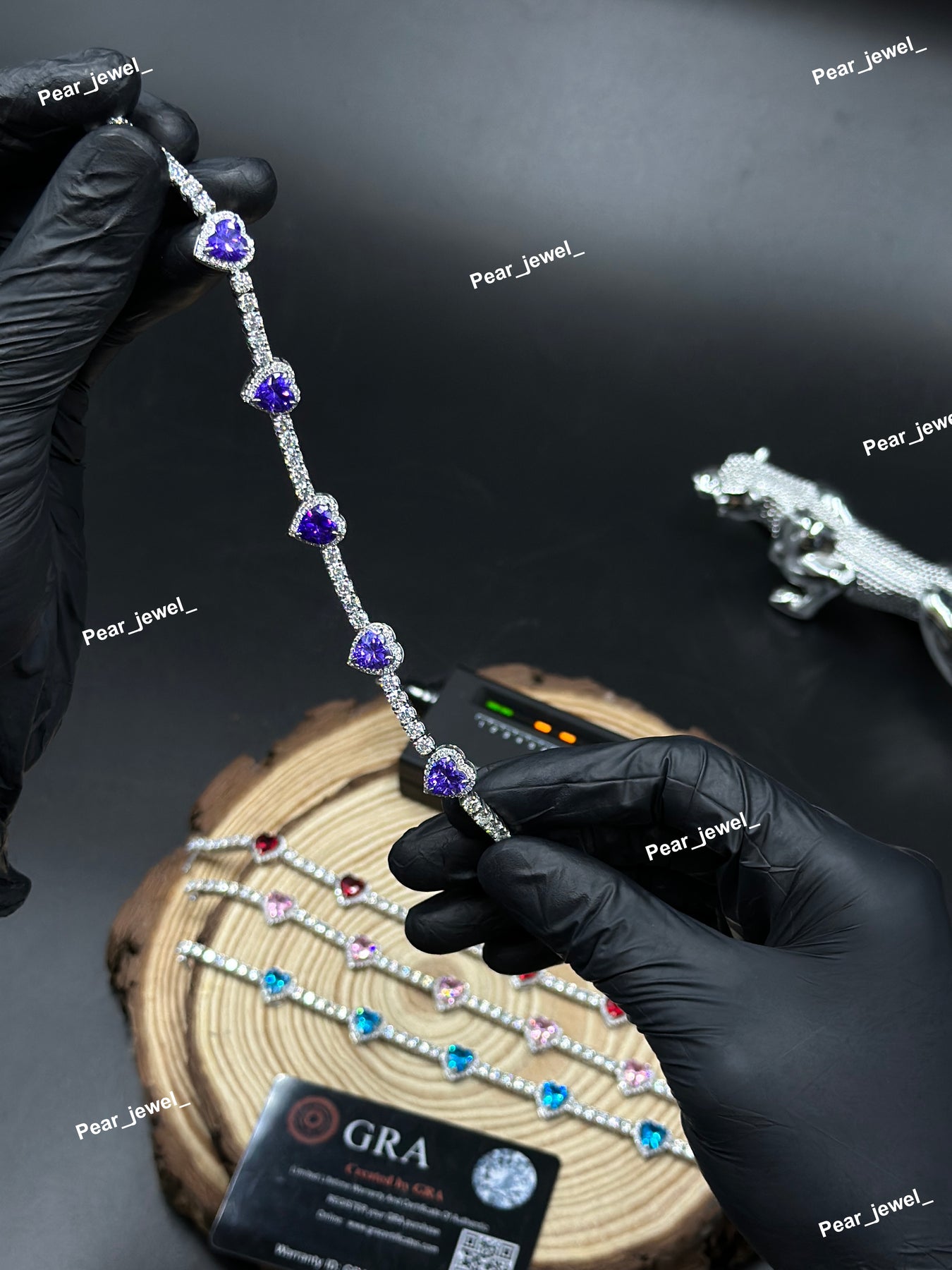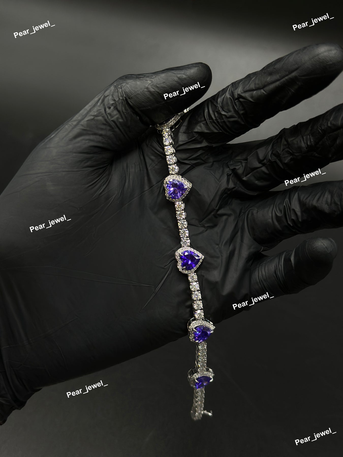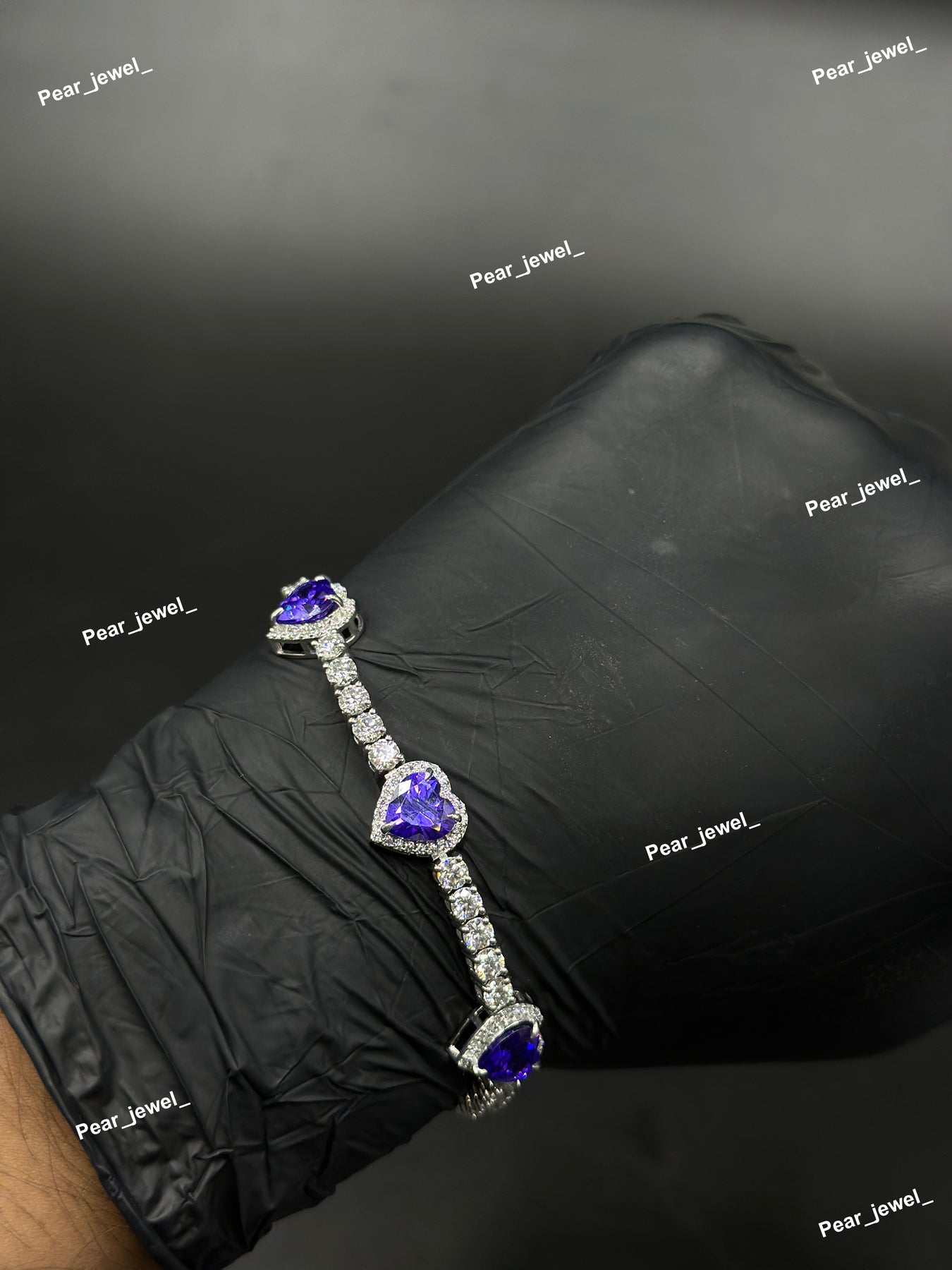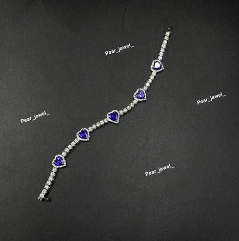 Purple Heart Cut Accent Tennis Bracelet VVS Moissanite Dimaond Look Silver Shine